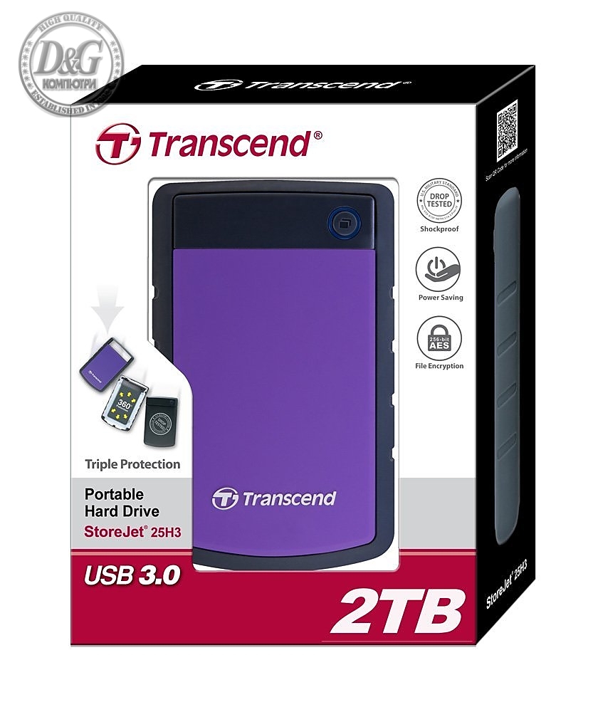 Transcend 2TB, 2.5" Portable HDD, StoreJet H3, Purple, Anti-shock