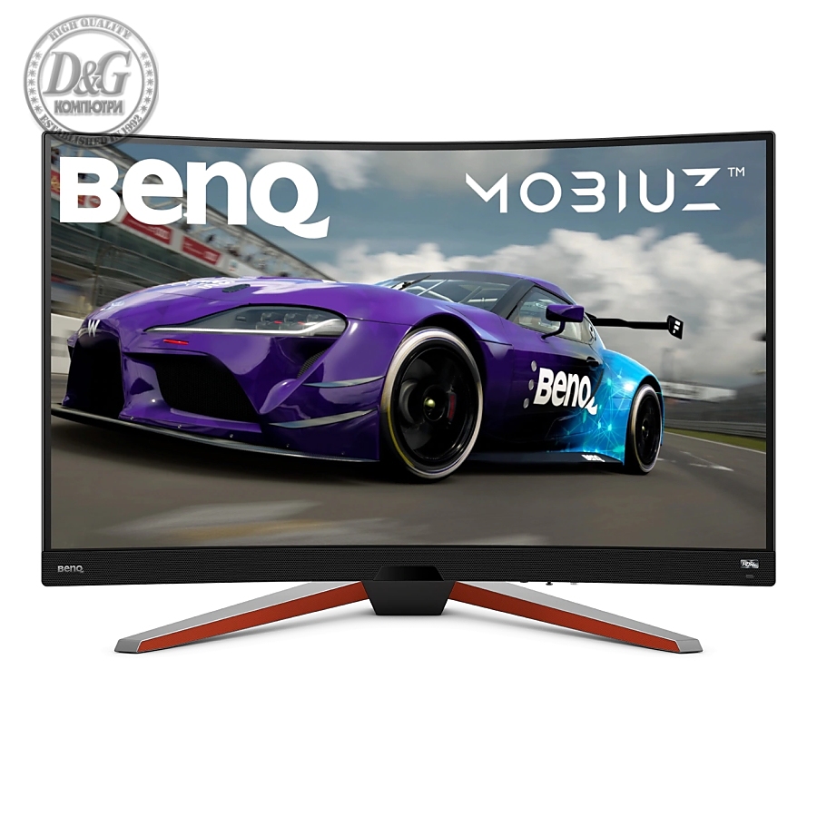 BenQ MOBIUZ 2K EX3210R, 31.5'' VA, 165Hz, 1ms, 2560x1440 QHD, 16:9 Curved Gaming, FreeSync Pro, P3 90%, sRGB, Flicker-free, Light Tuner,HDR 400,HDRi, B.I.+,LBL, Black eQualizer, 1000:1, 400cd/m2, treVolo 2x2W+5W woofer, 2xHDMI 2.0, DP, Height Adj., Gray