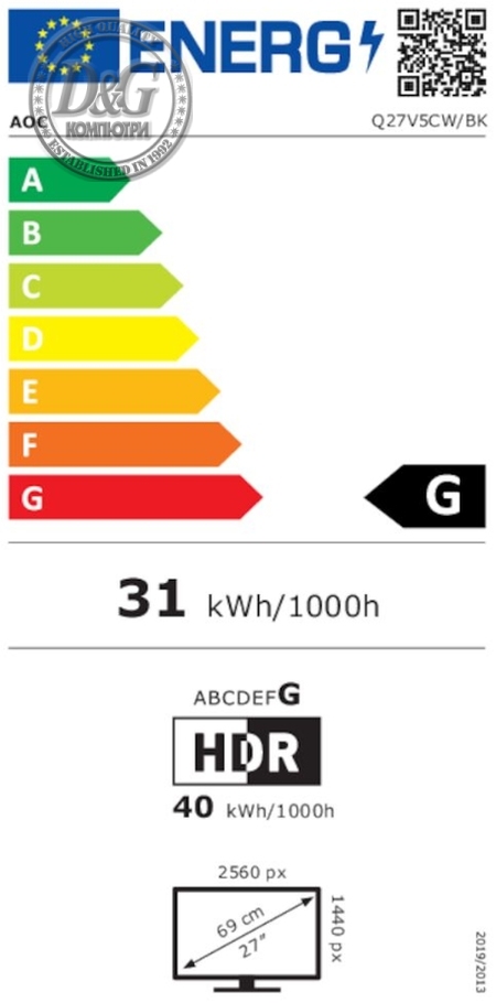 AOC Q27V5CW/BK, 27" IPS WLED, 2560x1440@75Hz, 4ms GtG, 1ms MPRT, 300cd m/2, 1000:1, 20M:1 DCR, Adaptive Sync, FreeSync, Low Blue Light, 5Wx2, Tilt, Height Adjust, Pivot, Swivel, HDMI, DP, USB hub