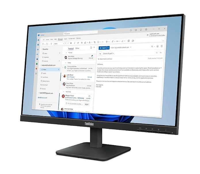 Lenovo ThinkVision T24-40 23.8" IPS, WLED, 1920x1080, 4ms, 250 cd/m2, 1500:1, 48Hz-120Hz, Tilt, Swivel, Pivot, Height Adjust Stand, USB-A,B,C, HDMI, DP, VGA