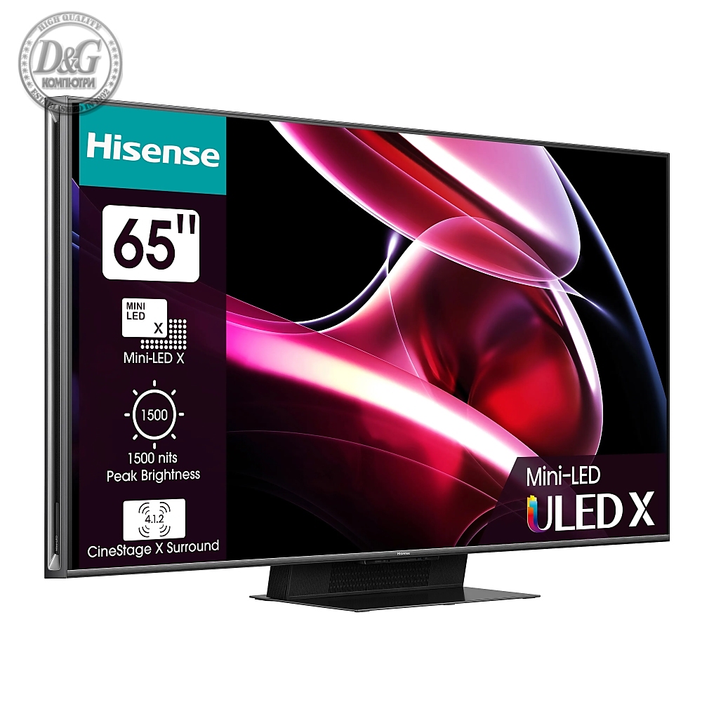 Hisense 65"U7Q Pro, 4K Ultra HD 3840x2160, ULED, FALD, Quantum Dot, 165Hz, IPS, HDR 10+, HLG, Dolby Vision IQ, Dolby Atmos, Smart TV, WiFi 5GHz, WiFi Direct, BT, Anyview Cast,light sensor,Solar Powered Remote, 4xHDMI, 2xUSB, LAN, CI+, DVB-T2/C/S2, Black