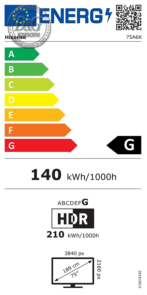 Hisense 65" A7Q, 4K Ultra HD 3840x2160, QLED, HDR 10+, HLG, Dolby Vision, Dolby Atmos, Smart TV, Light Sensor, WiFi Direct, BT, Anyview Cast, 3xHDMI, 2xUSB, LAN, CI+, DVB-T2/C/S2, Black