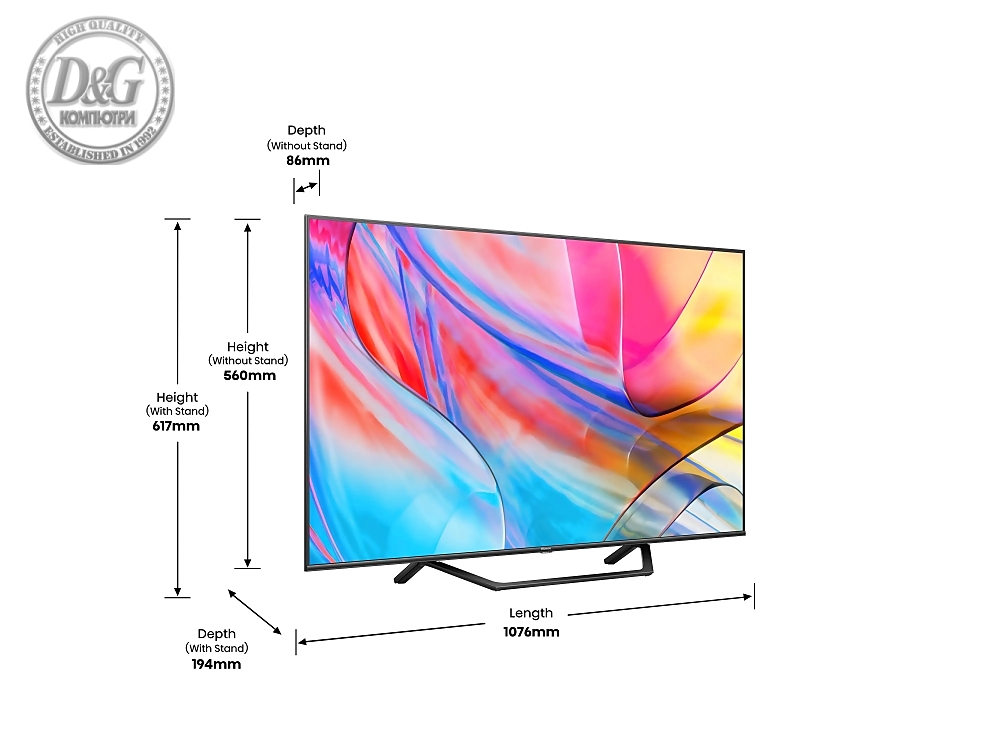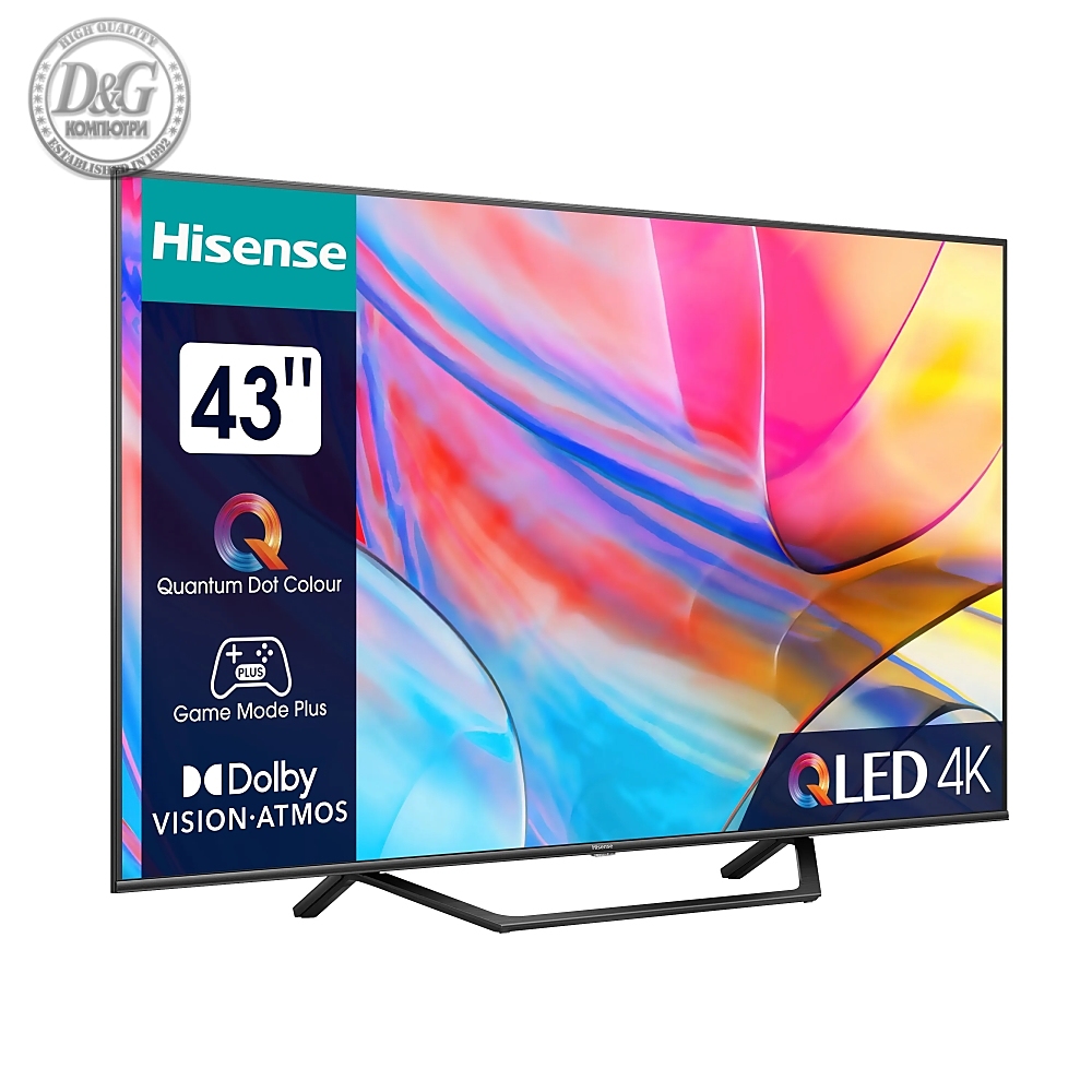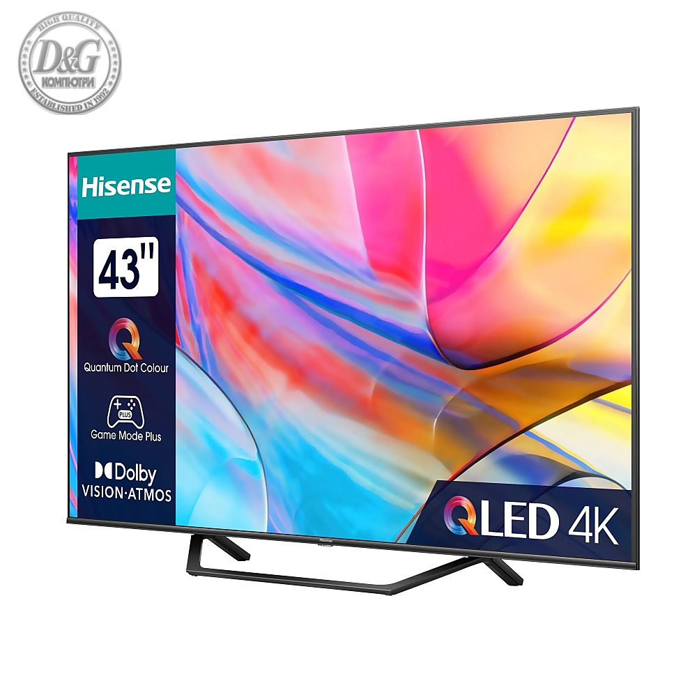 Hisense 43" A7KQ, 4K Ultra HD 3840x2160, QLED, FALD, Quantum Dot, HDR 10+, HLG, Dolby Vision, Dolby Atmos, Smart TV, WiFi 5GHz, WiFi Direct, BT, Anyview Cast, 3xHDMI, 2xUSB, LAN, CI+, DVB-T2/C/S2, Dark Grey
