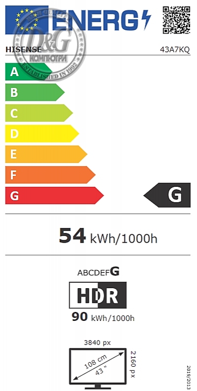Размер на екрана, inch: 43" (109.22 cm)