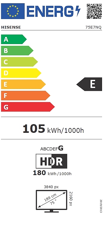 Hisense 75" E7Q, 4K Ultra HD 3840x2160, QLED, Quantum Dot, HDR 10+, HLG, Dolby Vision, DTS Virtual X, Smart TV, Light Sensor, WiFi Direct, BT, Anyview Cast, 3xHDMI, 2xUSB, LAN, CI+, DVB-T2/C/S2, Black