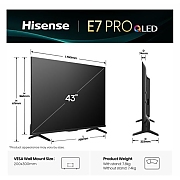 Hisense 55" E7Q Pro, 4K Ultra HD 3840x2160, QLED, Quantum Dot, 144Hz, HDR 10+ adaptive, HLG, Dolby Vision, DTS Virtual X, Smart TV, WiFi 5GHz, WiFi Direct, BT, Anyview Cast, 3xHDMI, 2xUSB, LAN, CI+, DVB-T2/C/S2, Black