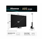 Hisense 55" A85Q, 4K UHD OLED Smart TV, 120Hz, 1000 nits,HDMI 2.1, Game Mode Pro, AMD FreeSync Premium, Dolby Vision IQ & Atmos, Bluetooth, Alexa Built-in, Black