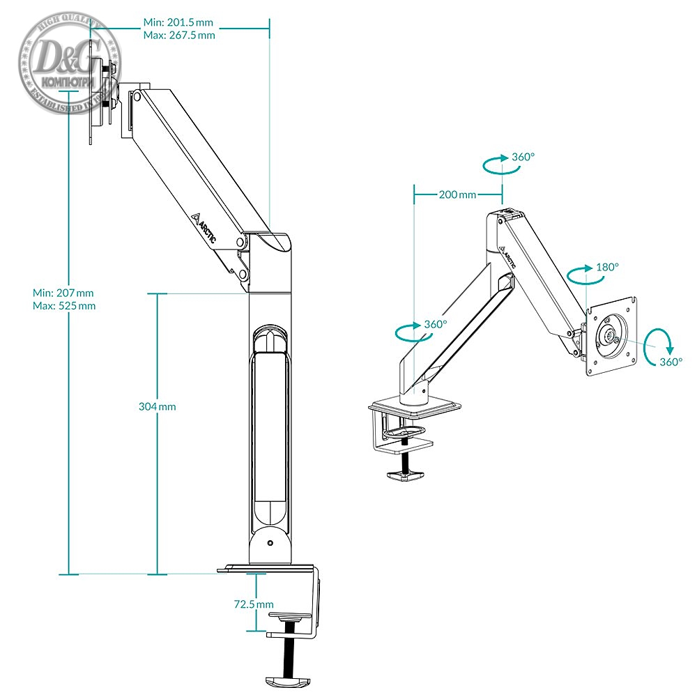| ДОПЪЛНИТЕЛНИ | Universally compatible Less visible cables The monitor arm supports ultrawide monitors with a screen diagonal of 49", as well as 16:9 monitors with a diagonal of 43" |