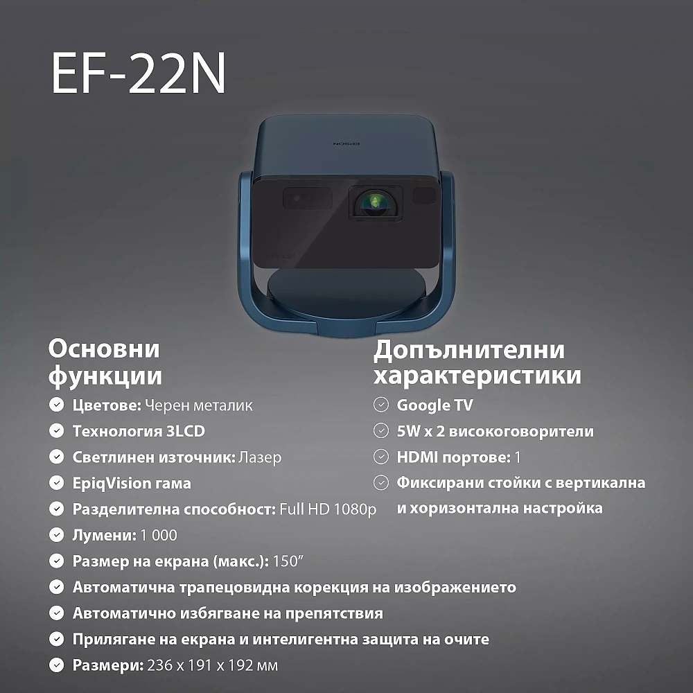 AOPEN Projector QF23s (Grey), LCD, LED Light Source, Full HD (1920x1080), 250 ANSI Lumens (6500 LED Lumens), 1000:1, Auto Focus, HDMI 2.0, HDMI 2.0 (HDCP) x 1, USB (Type A 2.0) x1 share output port, Speakers 2x3W, (V 5.4, BT In/Out), 1.23 kg, Grey