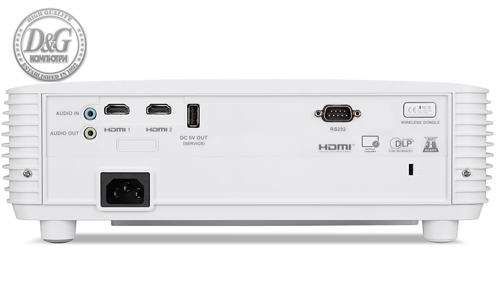 Acer Projector P1258i, DLP, XGA (1024x768), 4800 ANSI Lumens, 20000:1, 1.3x, 2x HDMI (1.4a), VGA, RCA, Wireless dongle included, Audio in/out (3.5mm), VGA out, DC Out (5V/1A, USB-A), Speaker 10W, Bluelight Shield, 2.8kg, Bag, 3Y, White