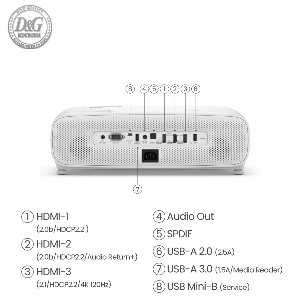 AOPEN Projector QF23s (Grey), LCD, LED Light Source, Full HD (1920x1080), 250 ANSI Lumens (6500 LED Lumens), 1000:1, Auto Focus, HDMI 2.0, HDMI 2.0 (HDCP) x 1, USB (Type A 2.0) x1 share output port, Speakers 2x3W, (V 5.4, BT In/Out), 1.23 kg, Grey