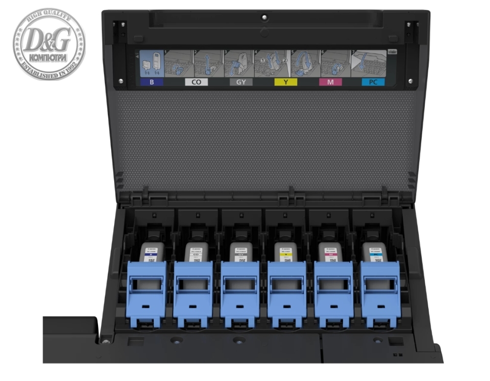 Консумативи: Ink Tank: MBK: PFI-2100 (160ml)/PFI-2300 (330ml)/ PFI-2700 (700ml) Others: PFI-3100 (160ml)/PFI-3300 (330ml)/ PFI-3700 (700ml); Print Head: PF-10 Cutter Blade: CT-07 Maintenance Cartridge: MC-30