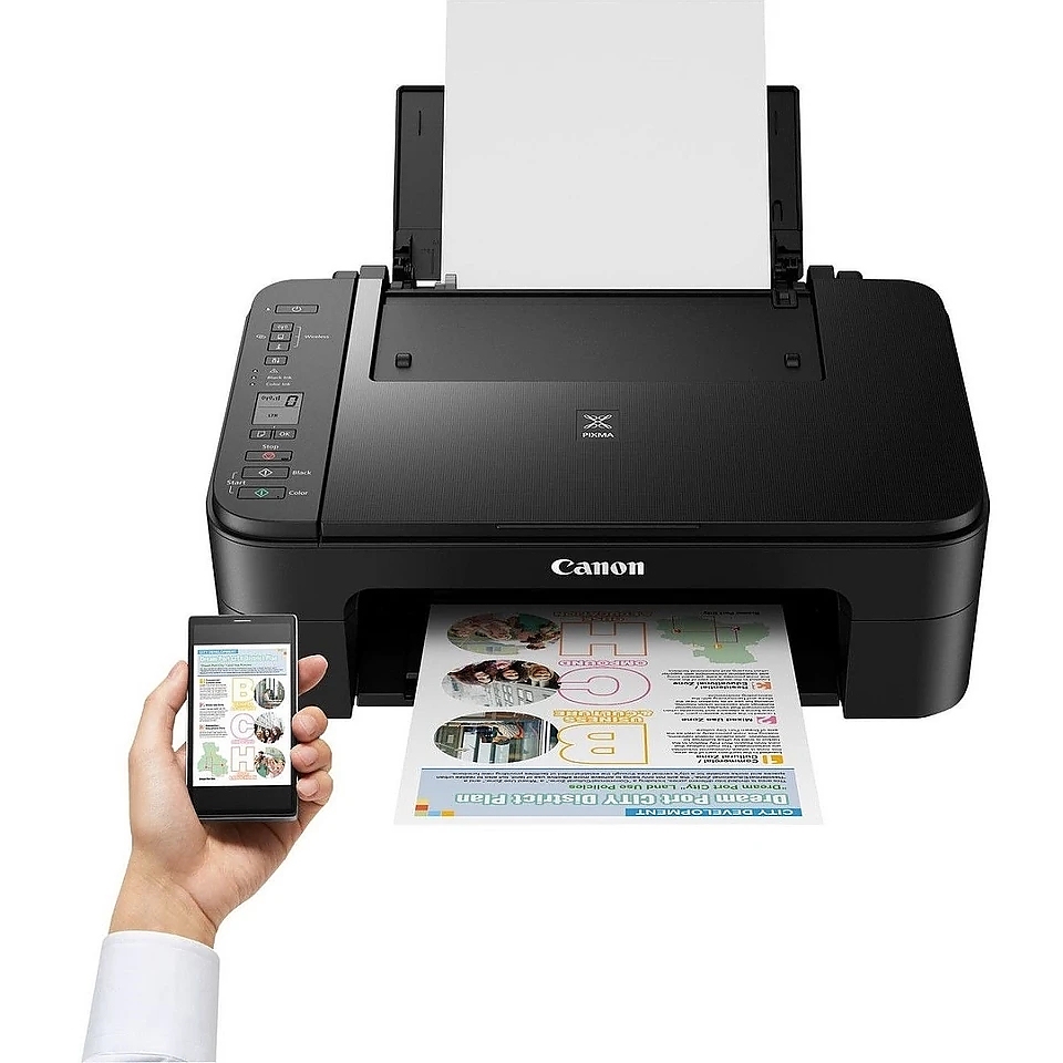 Canon PIXMA TS3355 All-In-One, Black + Canon Photo Cube and Frame + PP-201 5x5” Photo Paper Plus Glossy II (40 sheets) - Creative Pack, Pink