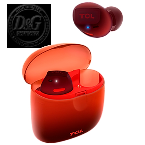 TCL In-Ear True Wireless Bluetooth Headset, Frequency of response 9-22K, Sensitivity 100 dB, Driver Size 5.8mm, Impedence 13 Ohm, Max power input 20mW, Playtime 6.5h/26h, IPX4, Bluetooth 5.0, A2DP, AVRCP, HFP, HS, USB-C, Color Sunset Orange