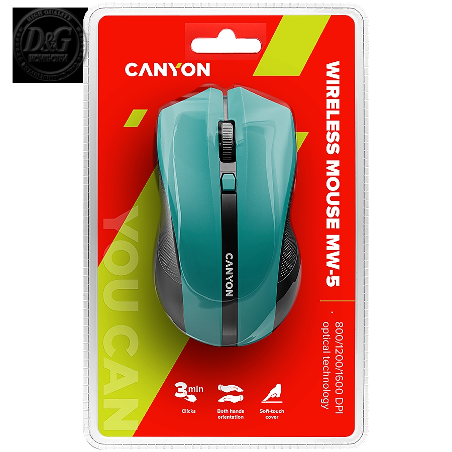 CANYON MW-5 2.4GHz wireless Optical Mouse with 4 buttons, DPI 800/1200/1600, Green, 122*69*40mm, 0.067kg