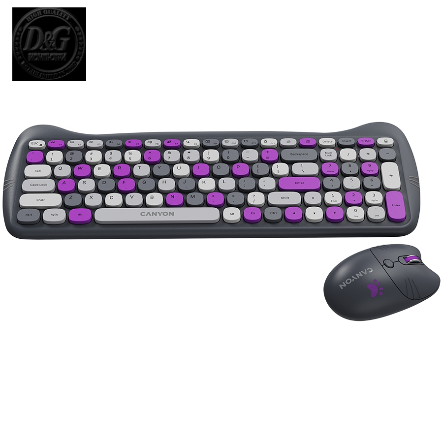 CANYON set HSET-W6 Keyboard+Mouse Kitty Edition AAA+АА Wireless Violet