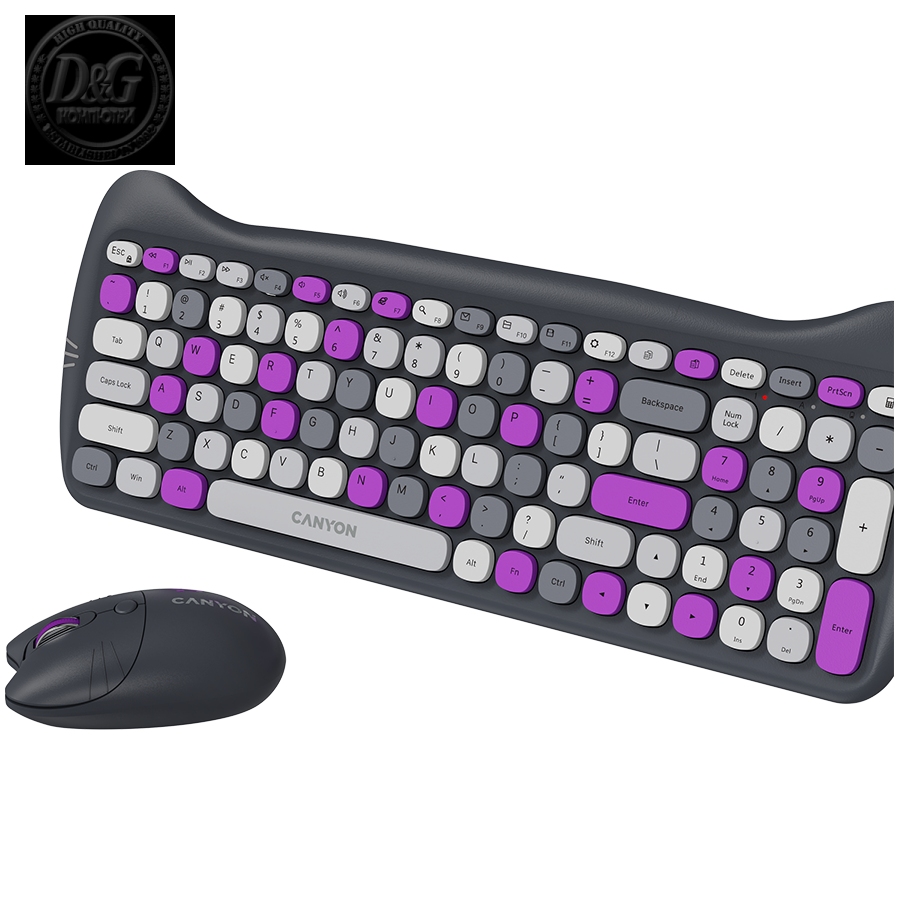 Търговско име: Set CANYON HSET-W6 Keyboard+Mouse Kitty Edition AAA+АА Wireless Violet