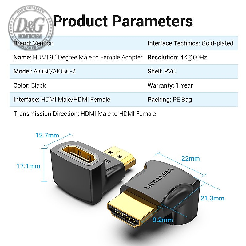 Vention Адаптер Adapter HDMI Right Angle 90 Degree M/F - AIOB0
