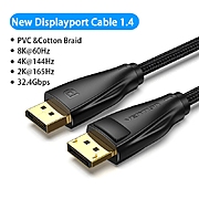 Vention кабел Display Port 1.4 DP M / M 8K 2m - Cotton Braided, Black - HCCBH