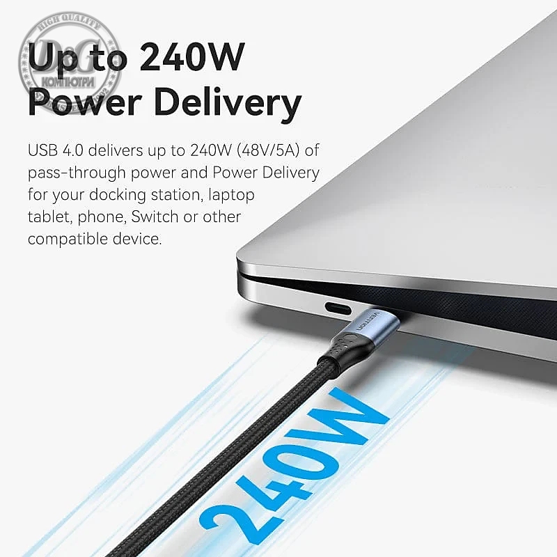 Vention кабел USB4.0 Type-C/Type-C 40Gbps, 240W 1m - TAVHF