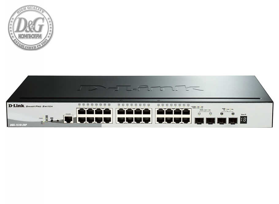 D-Link 28-Port Gigabit Stackable SmartPro PoE Switch including 2 SFP ports and 2 x 10G SFP+ ports