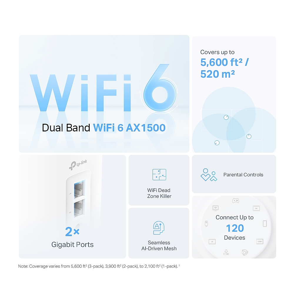 Безжичен рутер TP-LINK Deco X10(1-pack), AX1500, 2xGbE, MU-MIMO, Wi-Fi 6