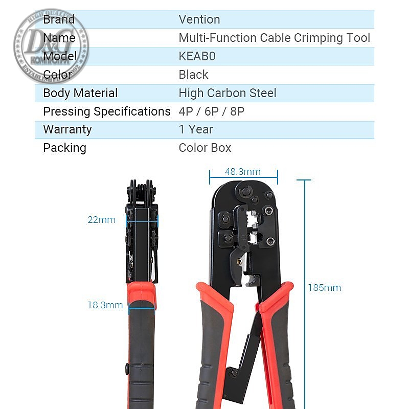 | Х-КА 1 | For crimping modular connectors: 8p (RJ-45 - 8P8C), 6p (RJ-14-6P4C & RJ-12 - 6P6C), 4p (RJ-9 - 4P4C) |