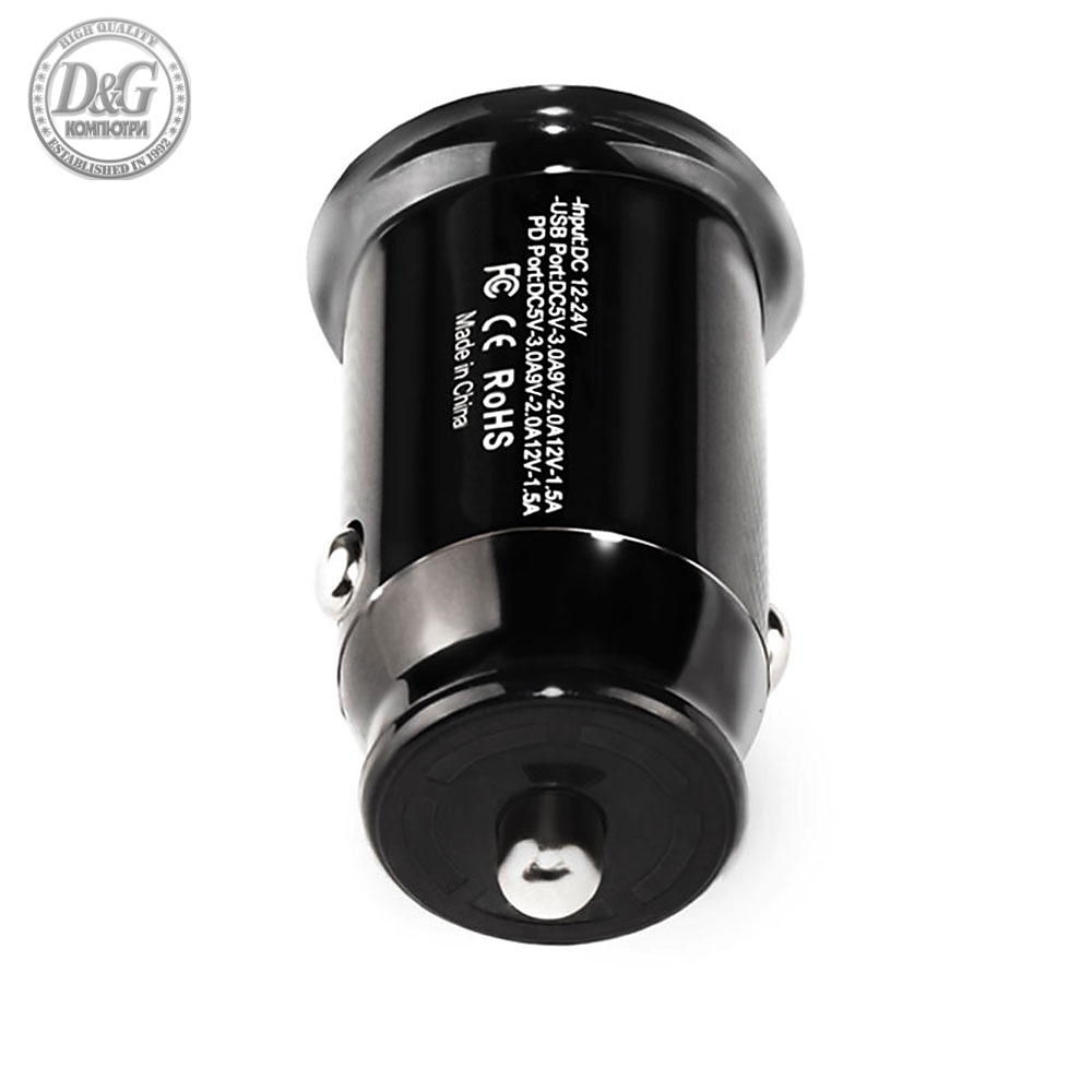 Makki зарядно за кола Fast Charger Car - Type-C + USB QC3.0 20W - MAKKI-CC20W02-BK