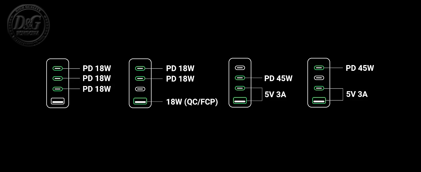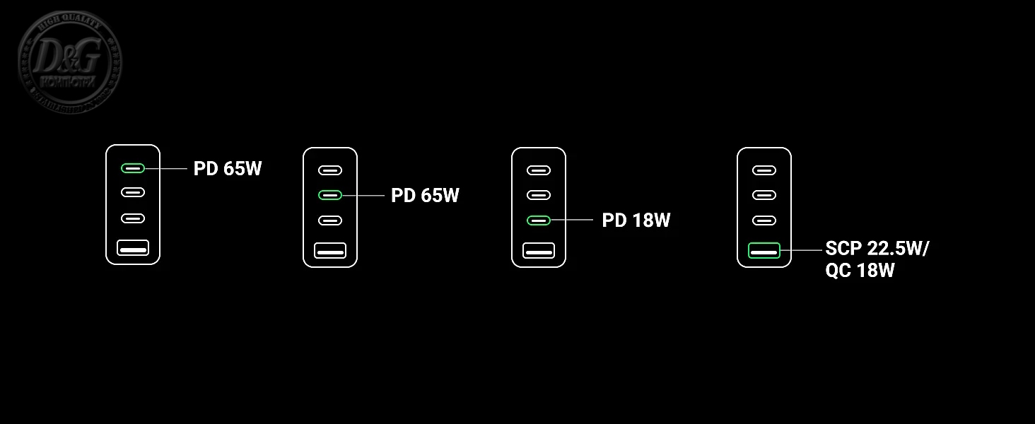 | Х-КА 5 | USB-C1,2 Output: 5V - 3.0A / 9V - 3.0A / 12V - 3.0A / 15V - 3.0A / 20V - 3.25A 65W Max |