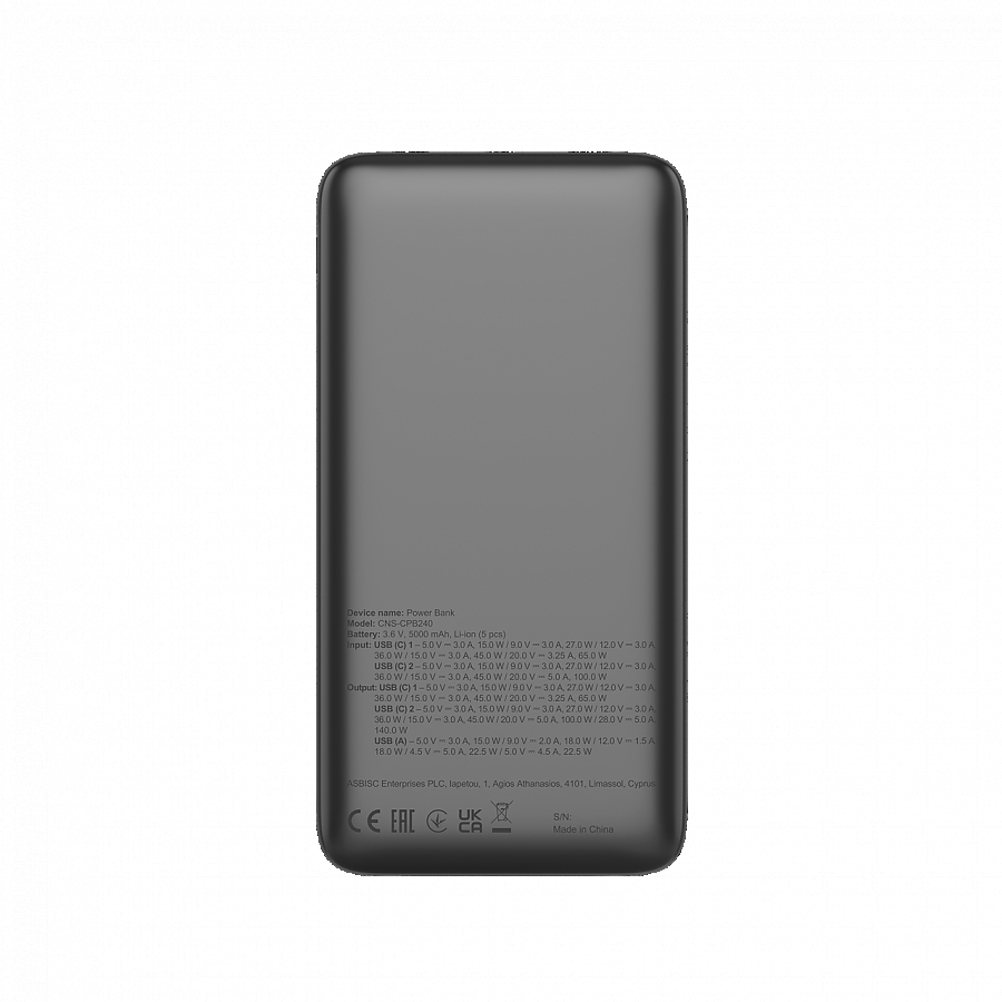 CANYON Power Bank PB-240, 25000mAh PD140W display power bank,Size160.0x82x27 mm Weight 508+-10g, Dark Grey