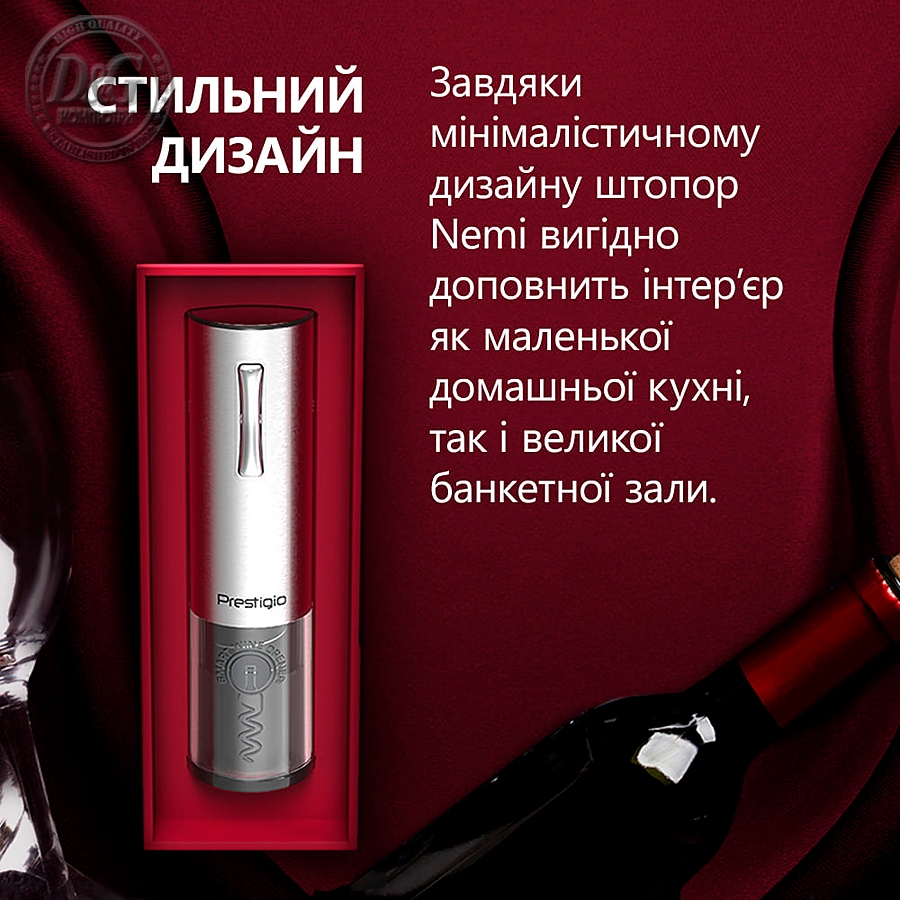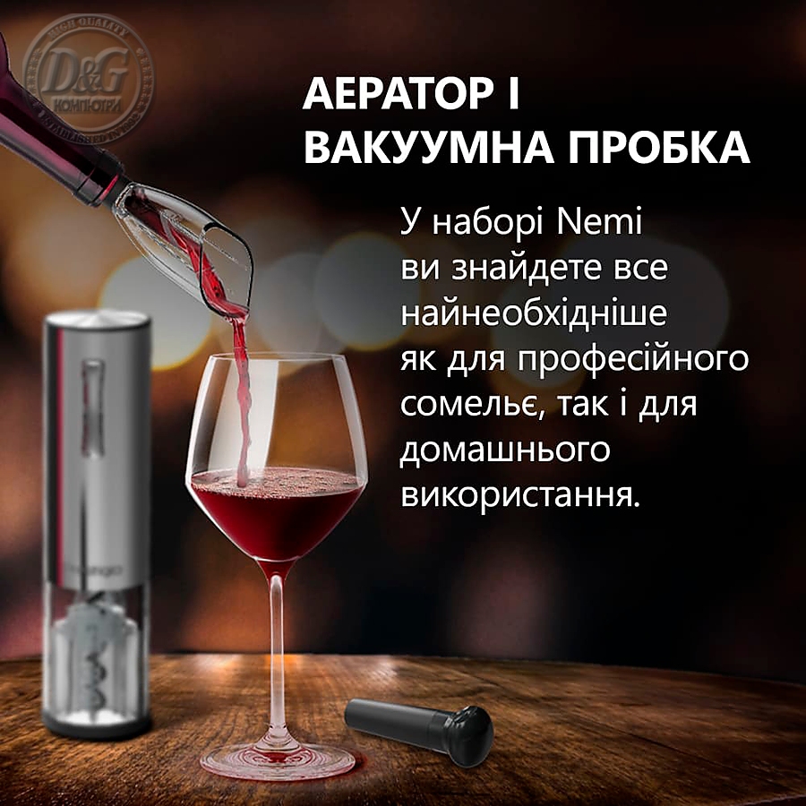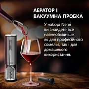 Nemi, Electric wine opener, aerator, vacuum preserver, Silver color