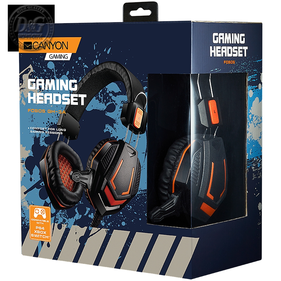 CANYON Gaming headset 3.5mm jack with microphone and volume control, with 2in1 3.5mm adapter, cable 2M, Black, 0.36kg