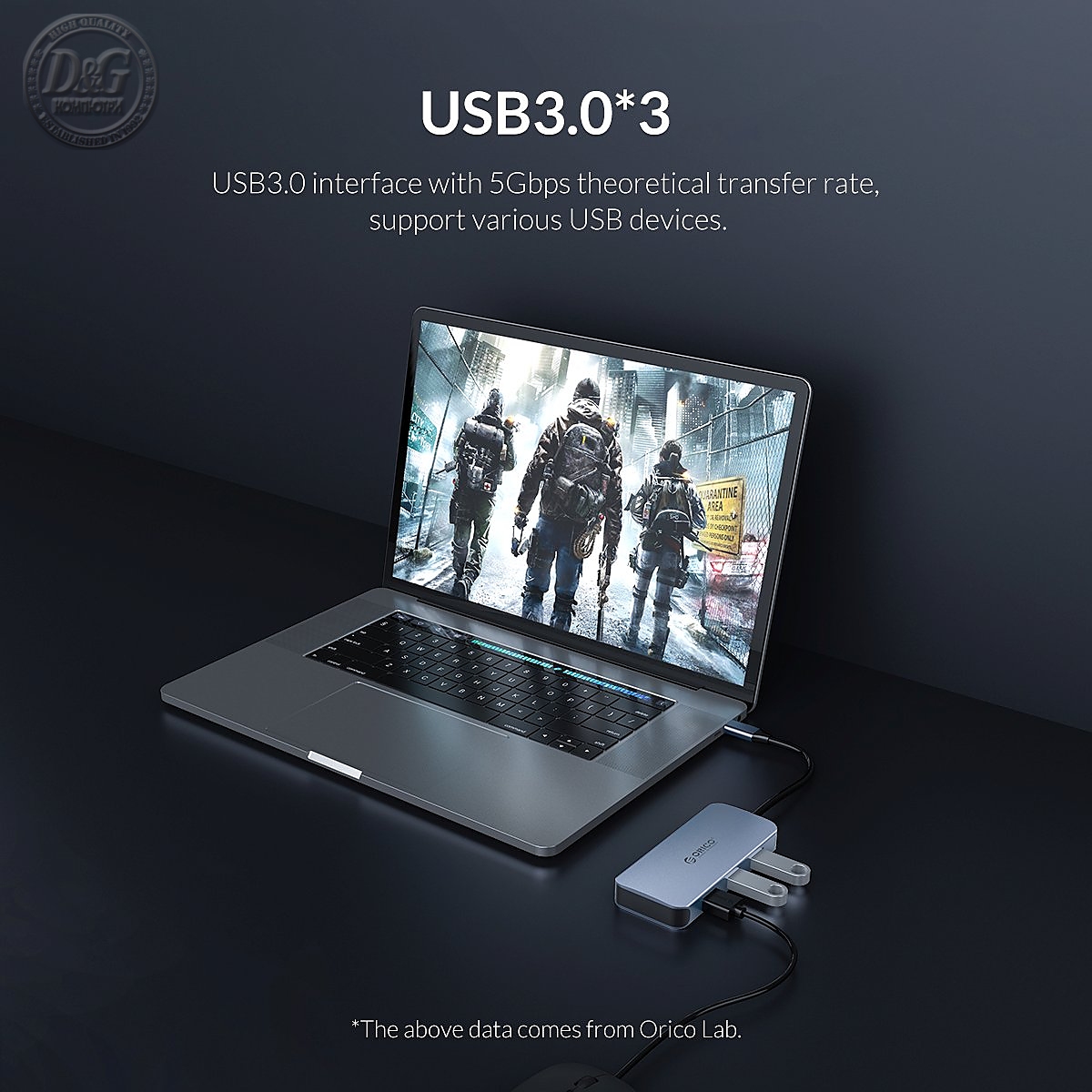 Orico докинг станция Portable Docking station M.2 SATA/NVMe - HDMI, USB3.2-A x 1, USB-C (10Gbps) x 1,USB-C (PD100W), USB2.0-A x 2, LAN - OM28PR-G2-BK