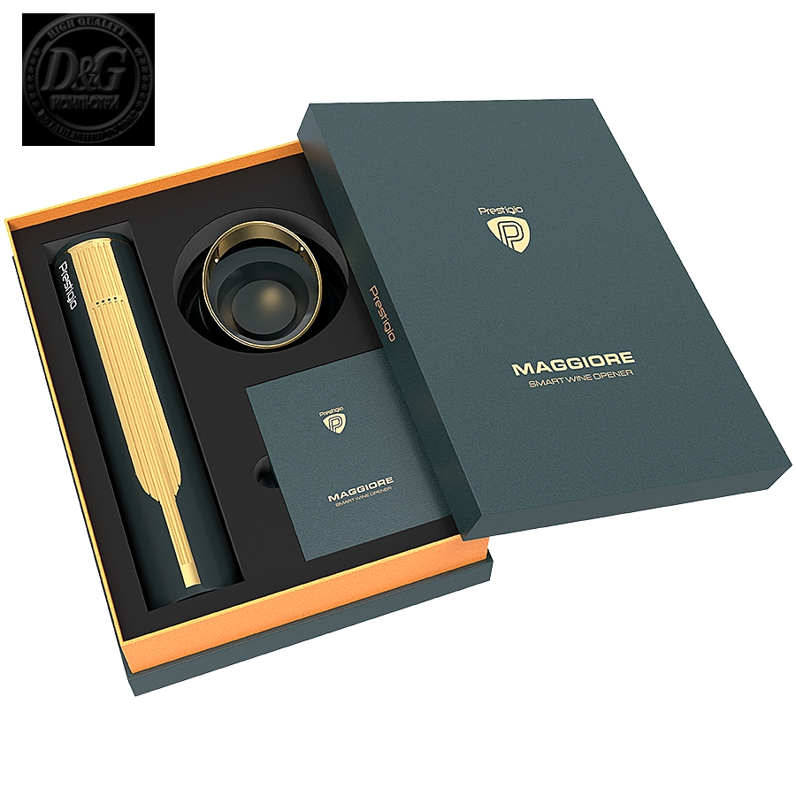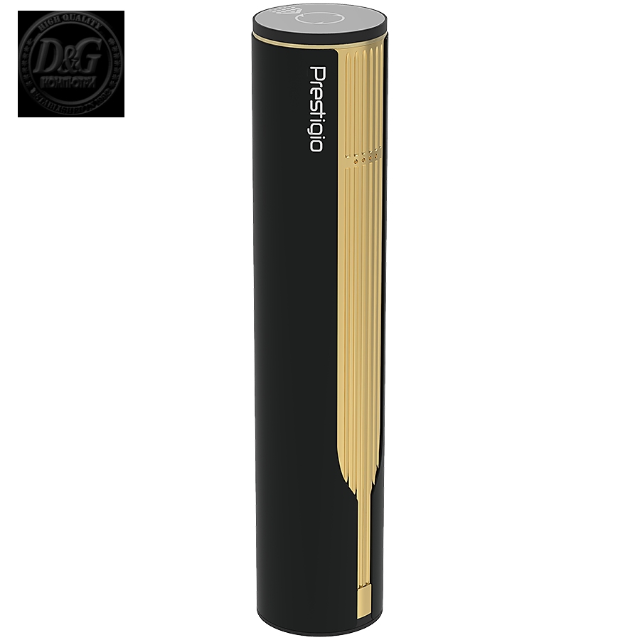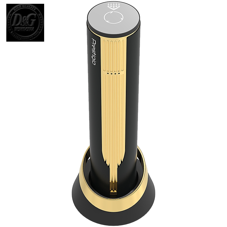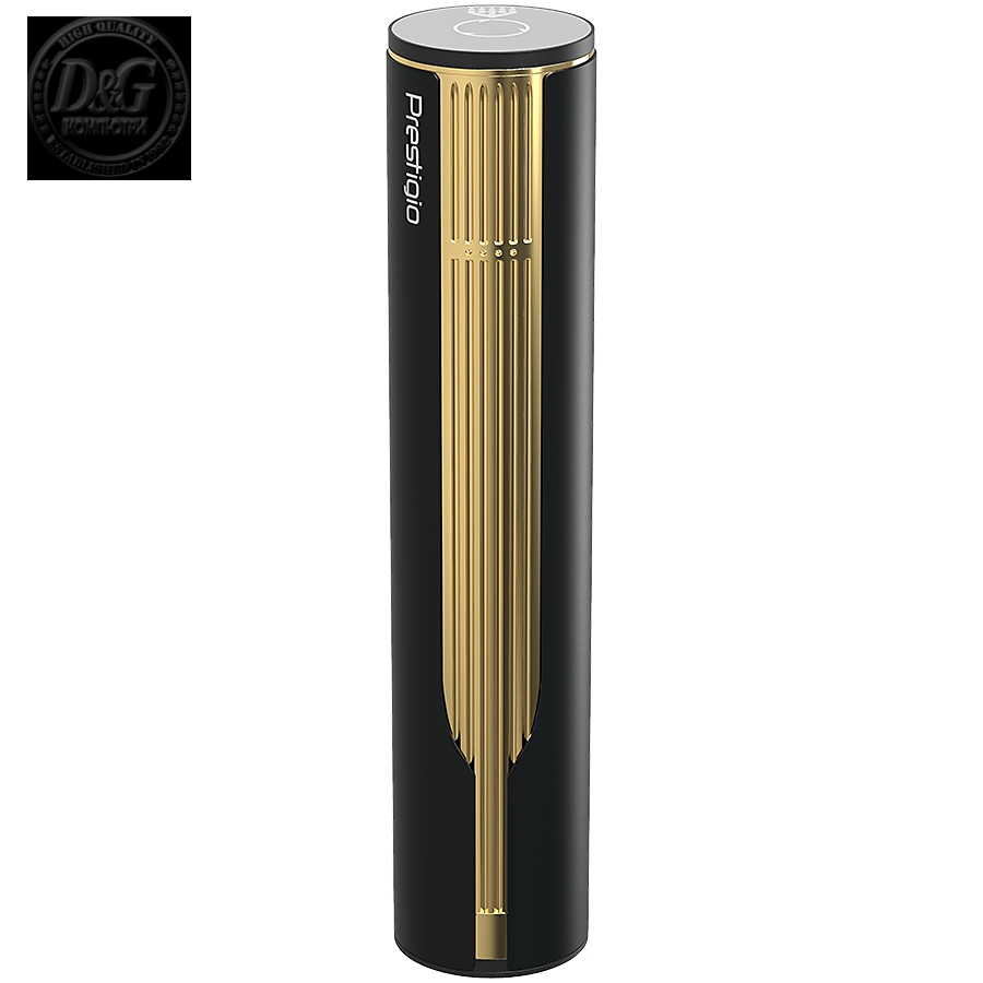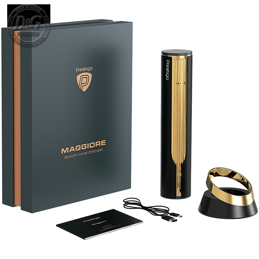Prestigio Maggiore, smart wine opener, 100% automatic, opens up to 70 bottles without recharging, foil cutter included, premium design, 480mAh battery, Dimensions D 48*H228mm, black + gold color.