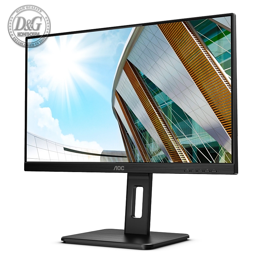 AOC Q24P2Q, 23.8" IPS WLED, 2560x1440@75Hz, 4ms GtG, 250cd m/2, 1000:1, DCR 50M:1, FlickerFree, Low Blue Light, 2Wx2, Tilt, Height Adjust, Pivot, Swivel, D-SUB, HDMI, DP, USB hub