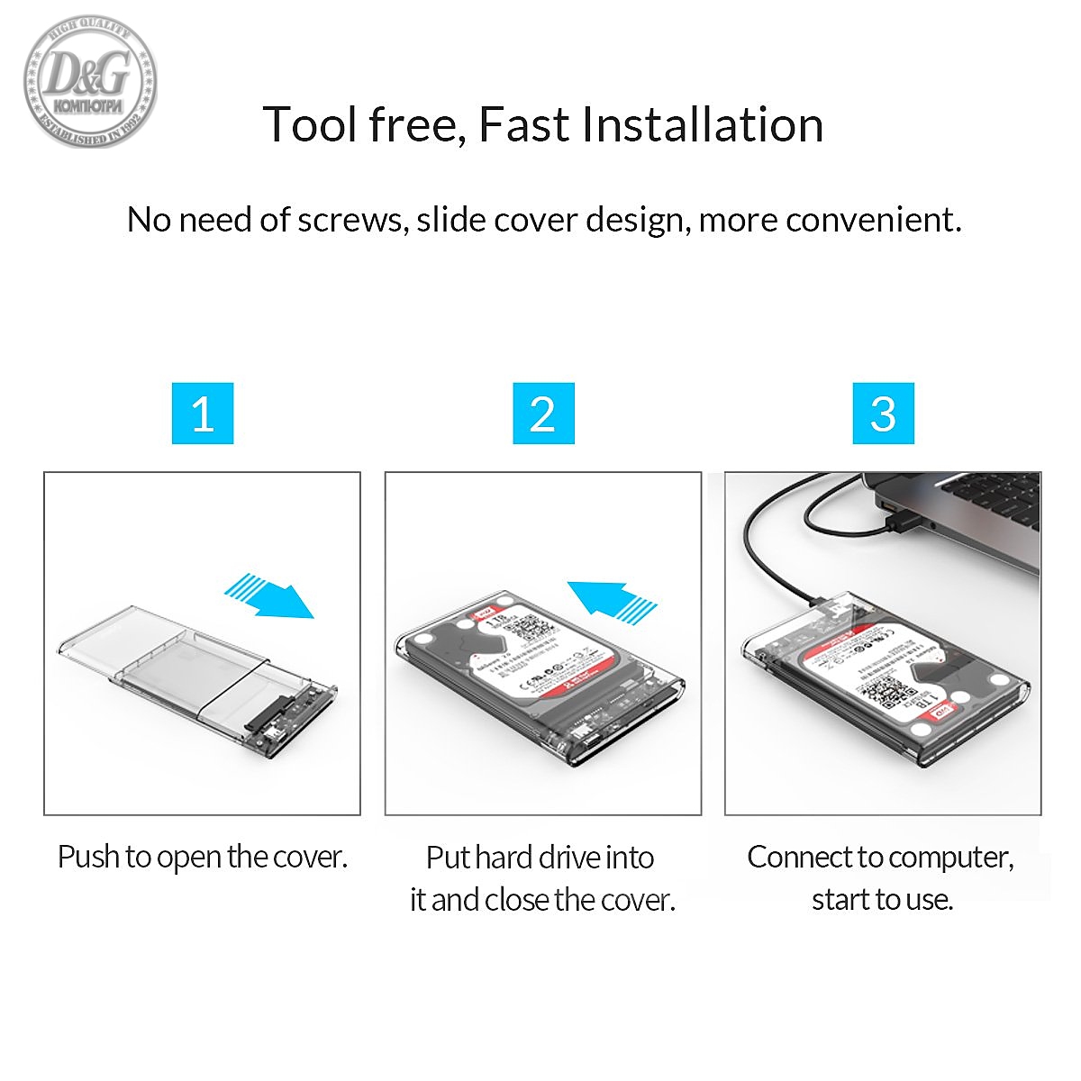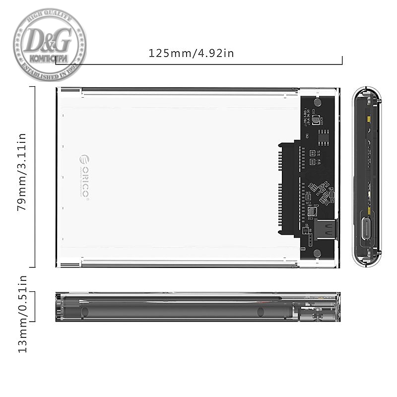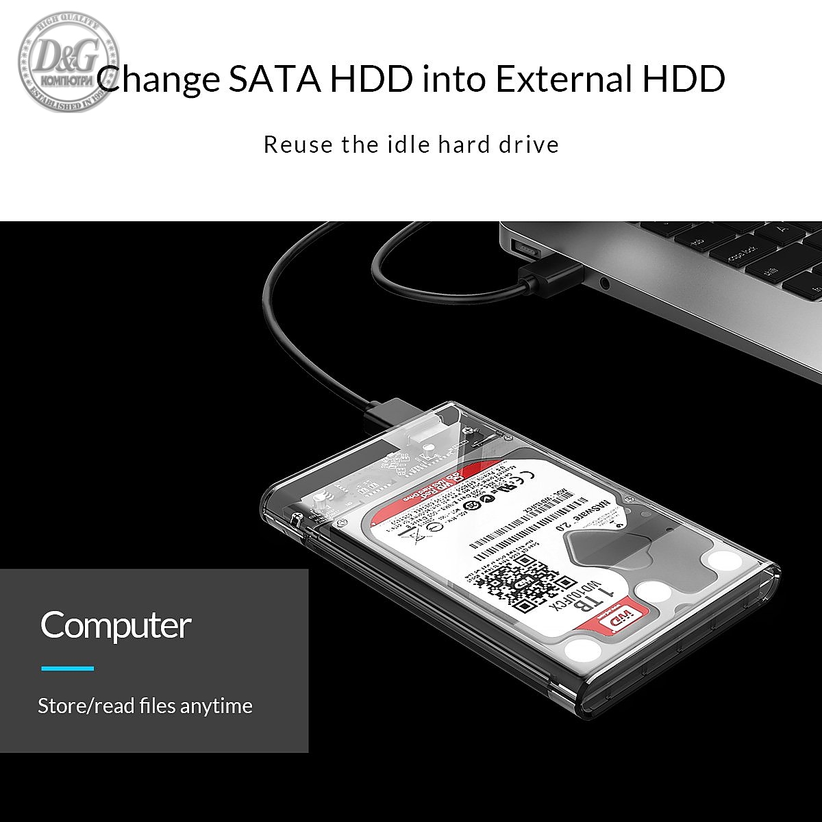 Orico външна кутия за диск Storage - Case - 2.5 inch 10Gbps Type-C Transparent - 2139C3-G2-CR-BP
