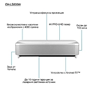 Acer Projector H6805BDa, DLP, 4K UHD (3840x2160), 4000 ANSI Lm, 20 000:1, 3D ready, HDR Comp., Auto Keystone, 24/7 oper., Low input lag, smart AptoidTV, 2xHDMI, VGA in, RS232, Audio in/out, 10W, 3.2Kg, Wireless dongle included, Bag, White + Acer T82-W01M