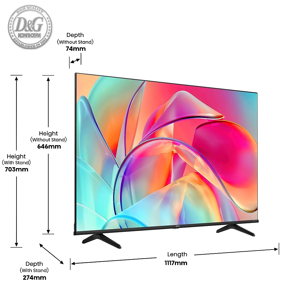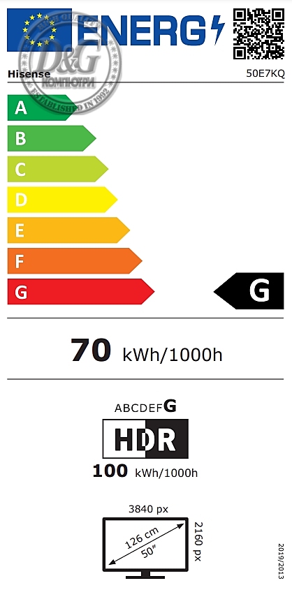 Hisense 50" E7KQ, 4K Ultra HD 3840x2160, QLED, Quantum Dot, HDR 10+, HLG, Dolby Vision, DTS Virtual X, Smart TV, WiFi 5GHz, WiFi Direct, BT, Anyview Cast, 3xHDMI, 2xUSB, LAN, CI+, DVB-T2/C/S2, Black