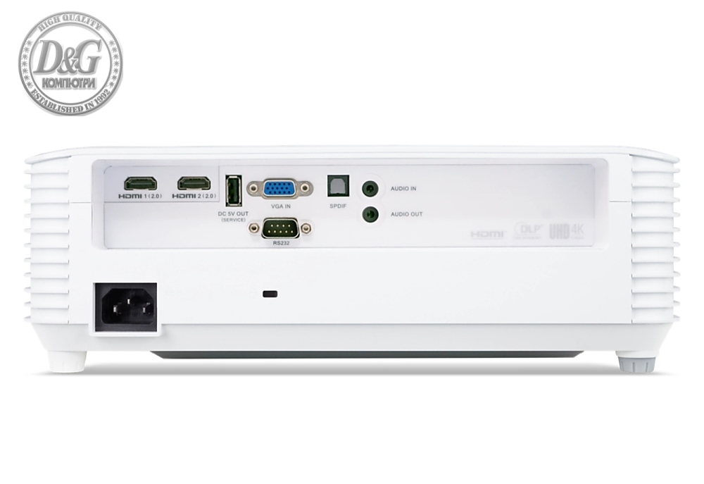 Acer Projector H6805BDa, DLP, 4K UHD (3840x2160), 4000 ANSI Lm, 20 000:1, 3D ready, HDR Comp., Auto Keystone, 24/7 oper., Low input lag, smart AptoidTV, 2xHDMI, VGA in, RS232, Audio in/out, 10W, 3.2Kg, Wireless dongle included, Bag, White + Acer T82-W01M