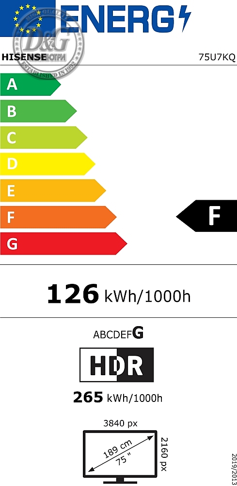 Hisense 75" E7Q, 4K Ultra HD 3840x2160, QLED, Quantum Dot, HDR 10+, HLG, Dolby Vision, DTS Virtual X, Smart TV, Light Sensor, WiFi Direct, BT, Anyview Cast, 3xHDMI, 2xUSB, LAN, CI+, DVB-T2/C/S2, Black
