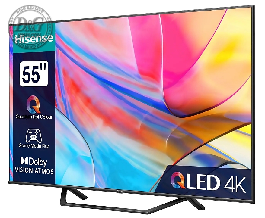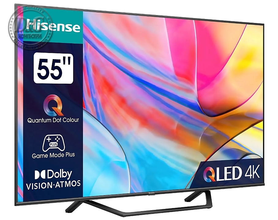 Hisense 55" E7Q, 4K Ultra HD 3840x2160, QLED, Quantum Dot, HDR 10+, HLG, Dolby Vision, DTS Virtual X, Smart TV, WiFi, Light Sensor, BT, Anyview Cast, 3xHDMI, 2xUSB, LAN, CI+, DVB-T2/C/S2, Black