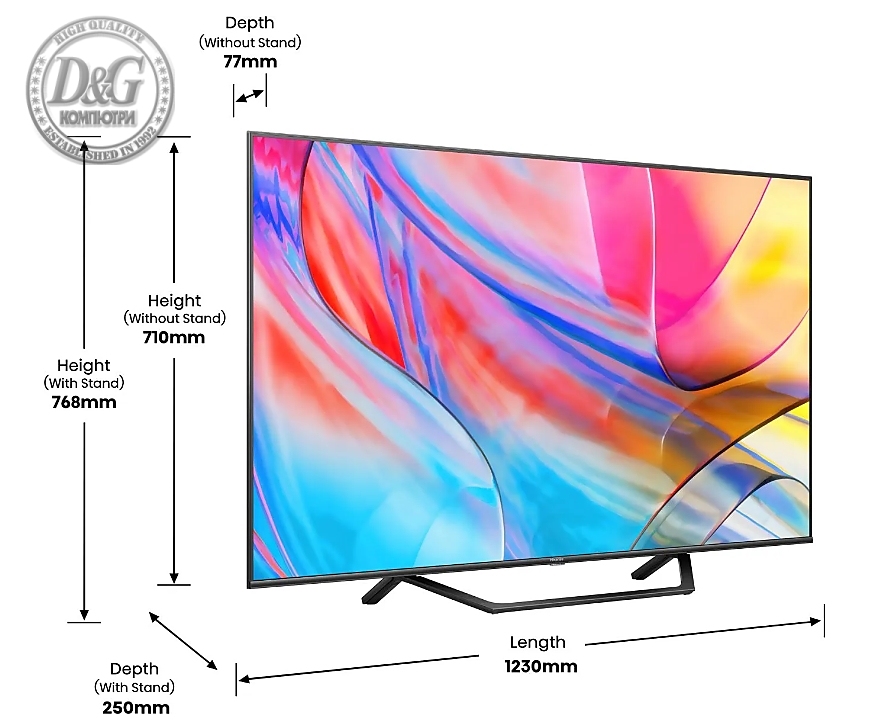 Hisense 65" A7Q, 4K Ultra HD 3840x2160, QLED, HDR 10+, HLG, Dolby Vision, Dolby Atmos, Smart TV, Light Sensor, WiFi Direct, BT, Anyview Cast, 3xHDMI, 2xUSB, LAN, CI+, DVB-T2/C/S2, Black