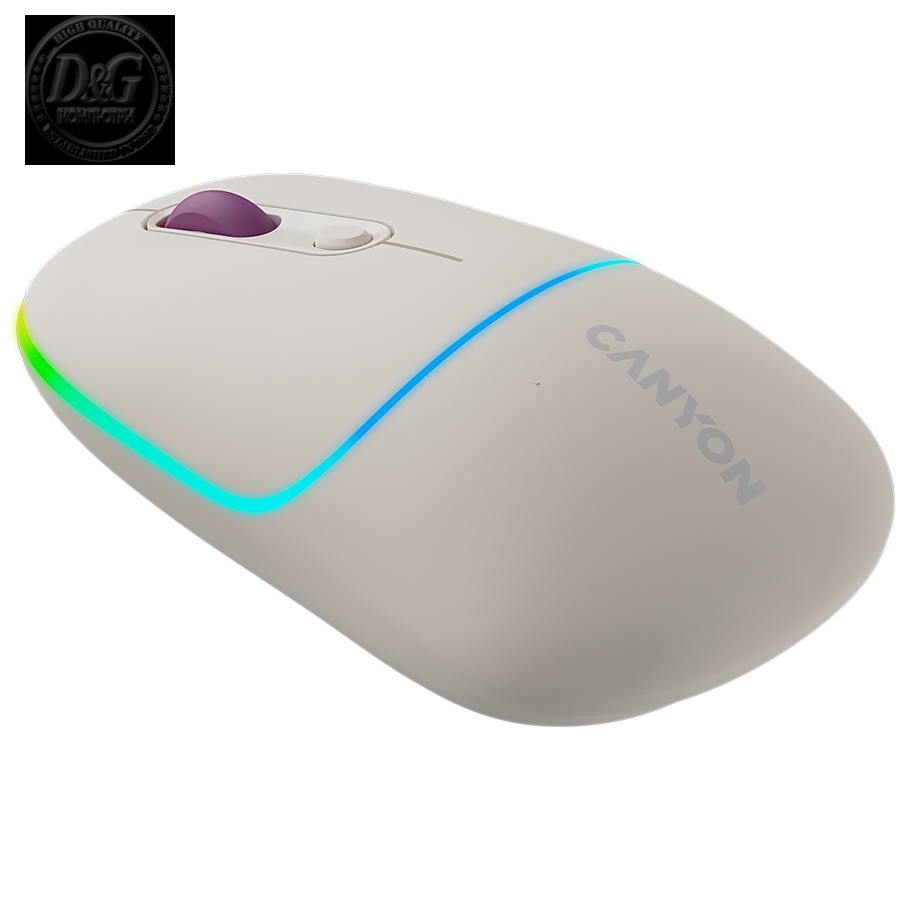 Canyon 6 buttons wireless 2.4Ghz mouse, MX8650A Sensor, DPI up to 1600,Injection case, 3 M life times left and right switches, 2xAAA battery, ABS material. Size: 105x71x40mm, Weight: 59g, Dark grey