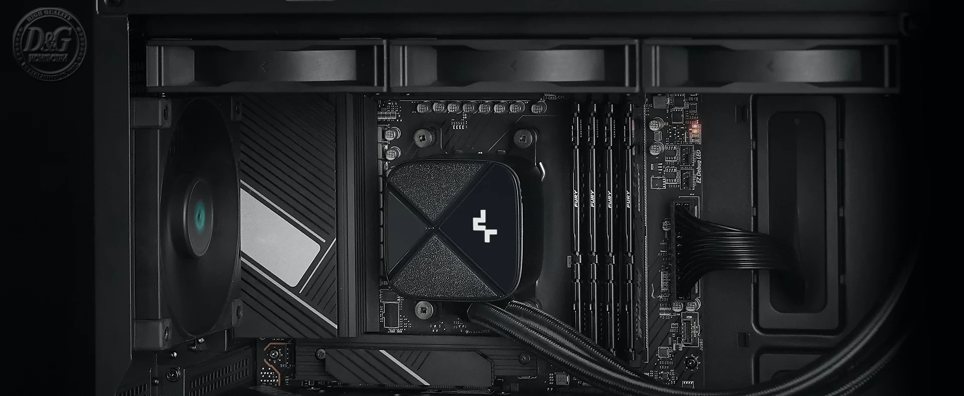| ДОПЪЛНИТЕЛНИ | All-blacked out design White LED logo on the pump Thick solid copper coldplate 4th generation pump DeepCool`s patented Anti-Leak Technology |