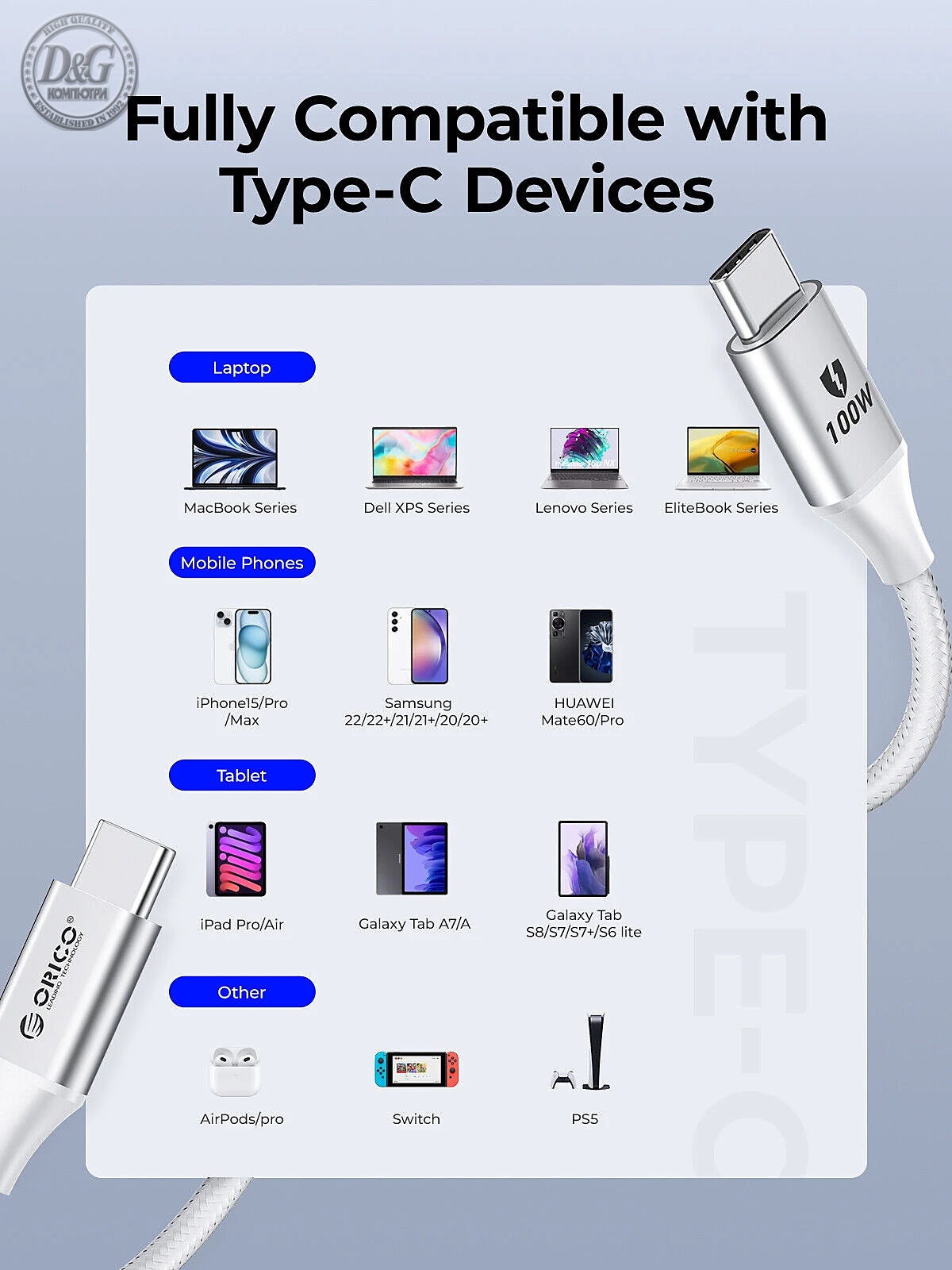 | ДОПЪЛНИТЕЛНИ | CHARGING PD 100W E-Mark Chip Nylon Braided |
