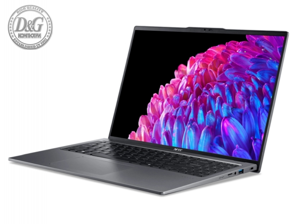 Acer Swift Go14, SFG14-73-56V2, Intel Core Ultra 5 125U (up to 4.3GHz, 12MB), 14" 3K (2880x1800) Cine Crystal OLED WQ2.8K 90Hz, 16GB DDR5(on bord) no slot, 1024GB, Intel Graphics, QHD Webcam, FPR, KB backlight, Wi-Fi 6E, BT 5.3, Win 11 Home, Pure Silver