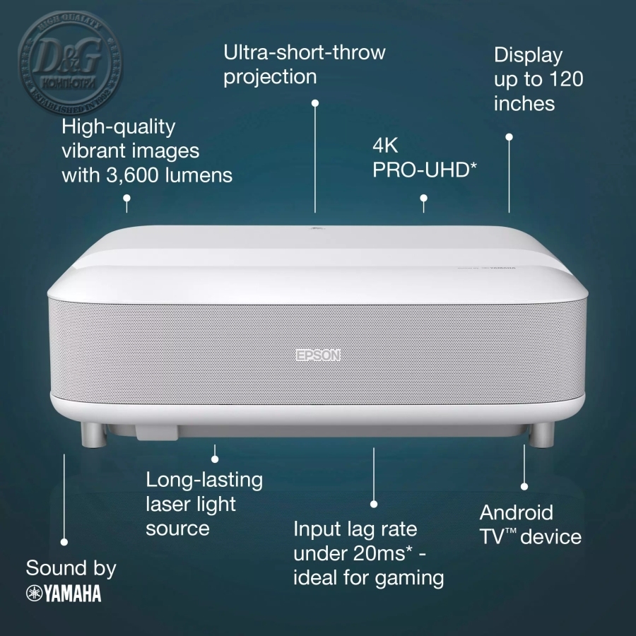 Acer Projector H6805BDa, DLP, 4K UHD (3840x2160), 4000 ANSI Lm, 20 000:1, 3D ready, HDR Comp., Auto Keystone, 24/7 oper., Low input lag, smart AptoidTV, 2xHDMI, VGA in, RS232, Audio in/out, 10W, 3.2Kg, Wireless dongle included, Bag, White + Acer T82-W01M