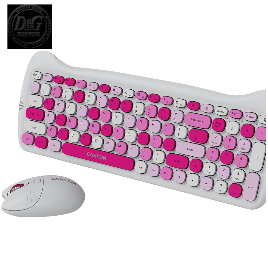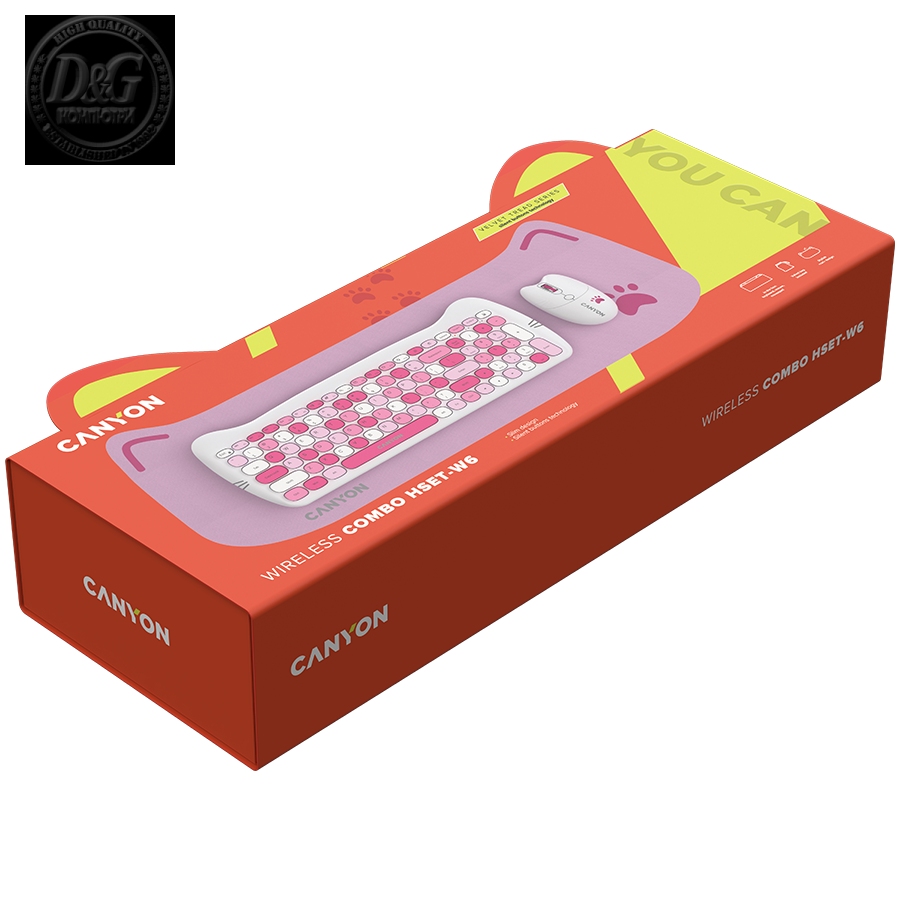 CANYON set HSET-W6 Keyboard+Mouse Kitty Edition AAA+АА Wireless Pink