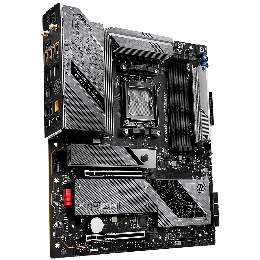ASROCK MB Desktop X870E Taichi Lite, AM5, 4x DDR5, 2x PCIe 5.0 x16, 1x Blazing M.2(PCIe Gen5x4), 3x Hyper M.2 (PCIe Gen4x4), 6x SATA3, RAID 0,1 and 10, 7.1 HD Audio, 3x USB-C, 12x USB 3.2, 6x USB 2.0, 1x HDMI, 1x SPDIF, 5 GB LAN, Wi-Fi, BT