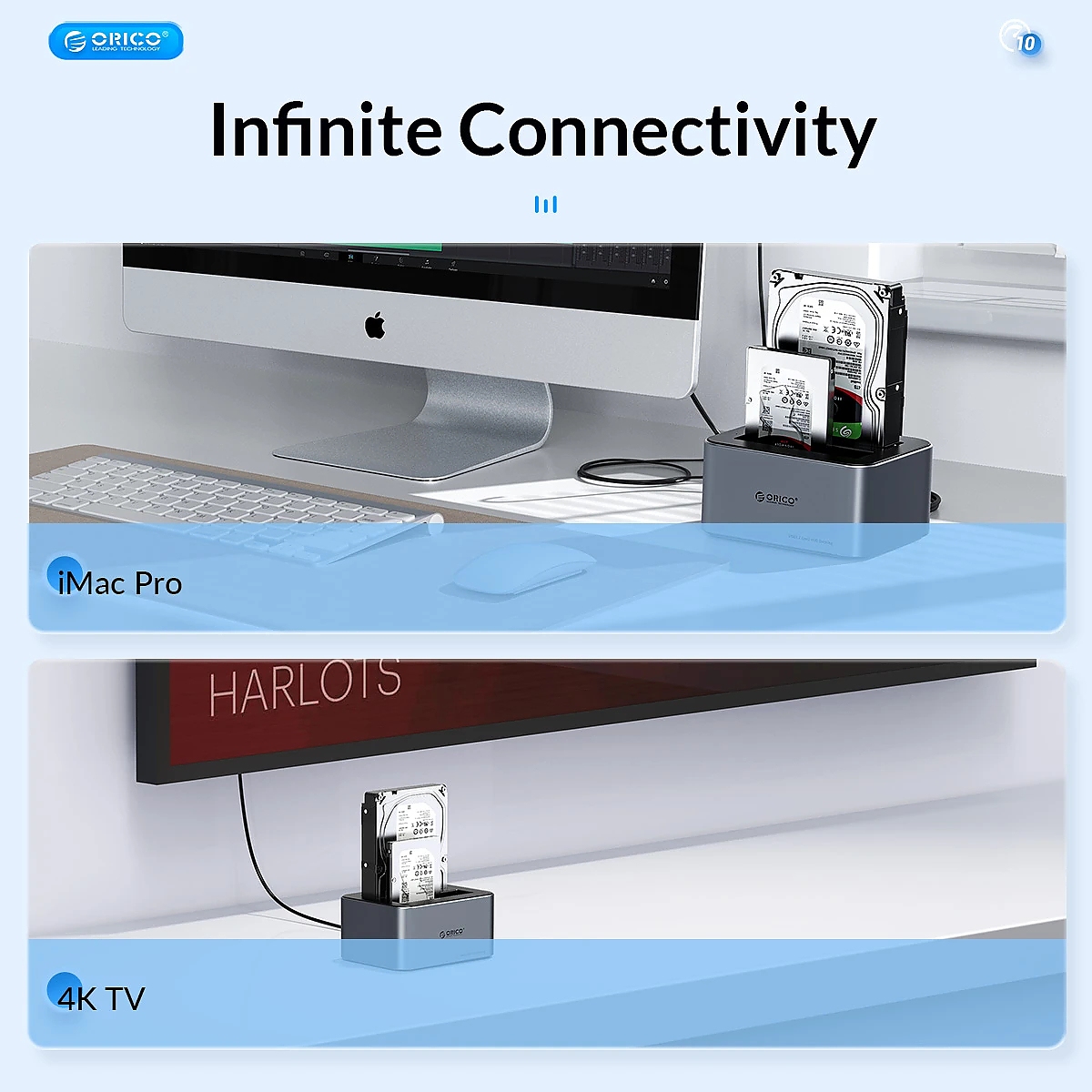 Orico докинг станция Storage - HDD/M.2 Dock - 2 BAY Offline Clone 2.5/3.5/M.2 NVMe USB-C/USB-A - IT28E-C-EU-GY
